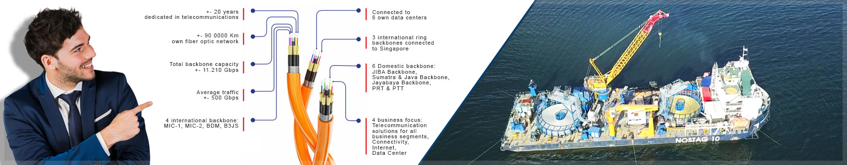 The Sumatra-Java-Bali backbone is a full-redundant network on many rings. This system is equipped with a very large capacity DWDM and SDH technology system.